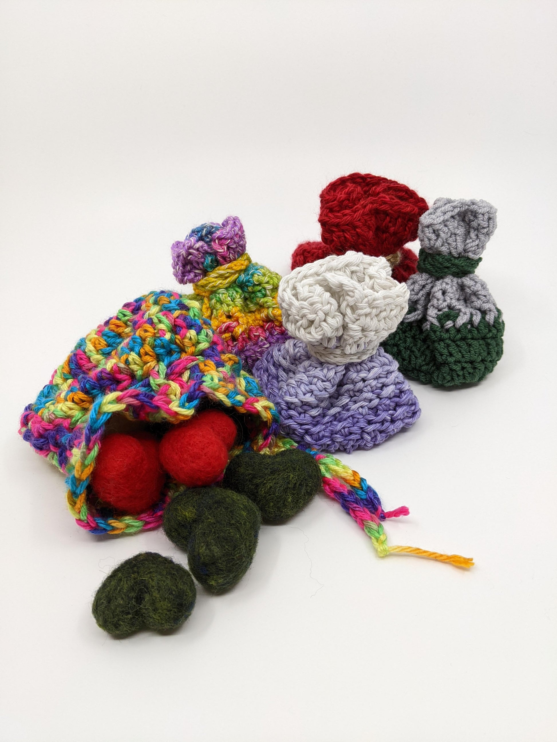 Crochet Small Pouches | Dice Bags | Large Drawstring Pouch